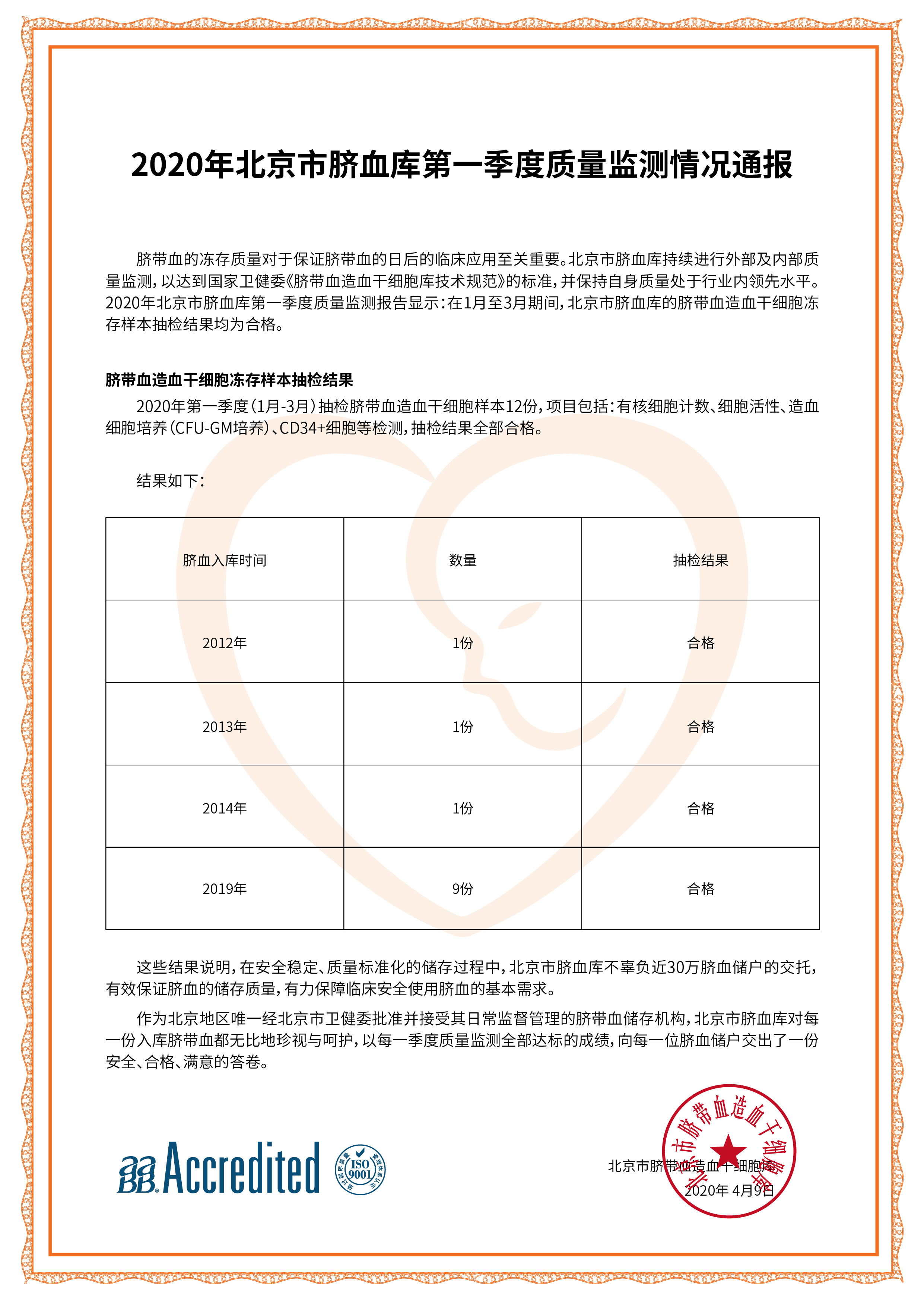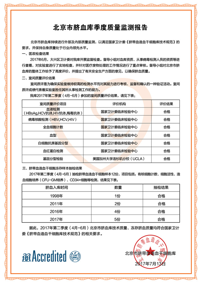 北京市脐带血造血干细胞库(简称北京市脐血库)始建于1996年,2002年由原卫生部批准成为中国第一家脐带血造血干细胞库(许可证号:卫脐血干细胞库字【2002】第001号),2007年通过北京市卫生局验收,获得特殊血站执业许可证,目前持有合法有效的京卫血字【2025】5号《血站执业许可证》。