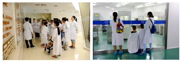 体验超净实验室,由参观讲解员介绍造血干细胞如何制备分离